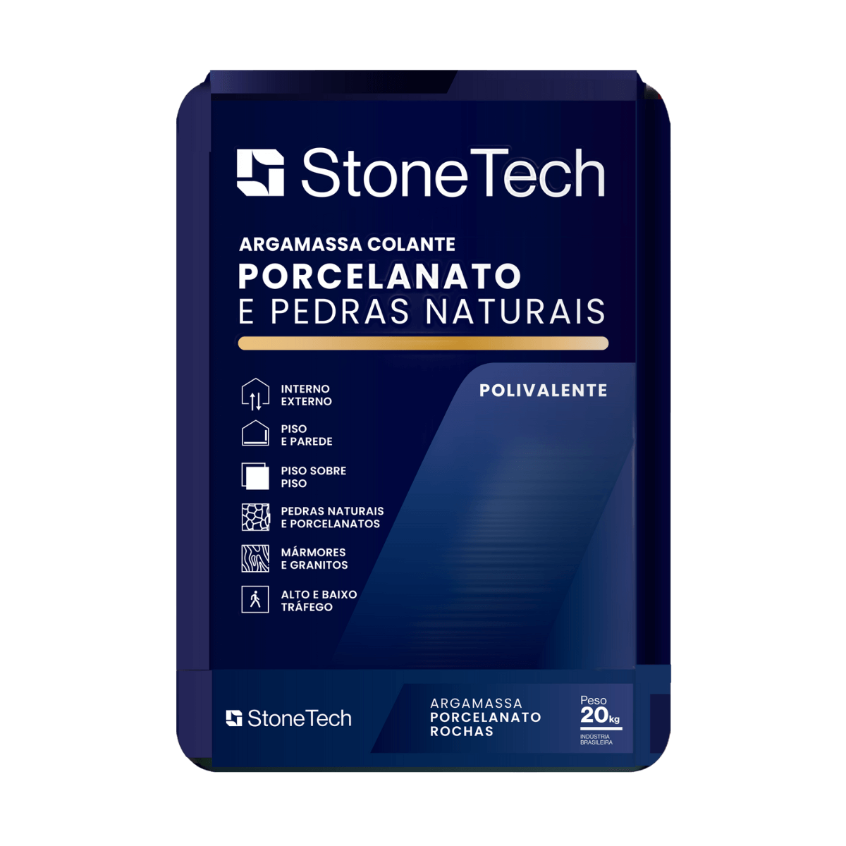 A argamassa colante Porcelanato e Rochas Stone Tech é indicada para assentamentos especiais que exigem alta aderência, resistência mecânica e flexibilidade.